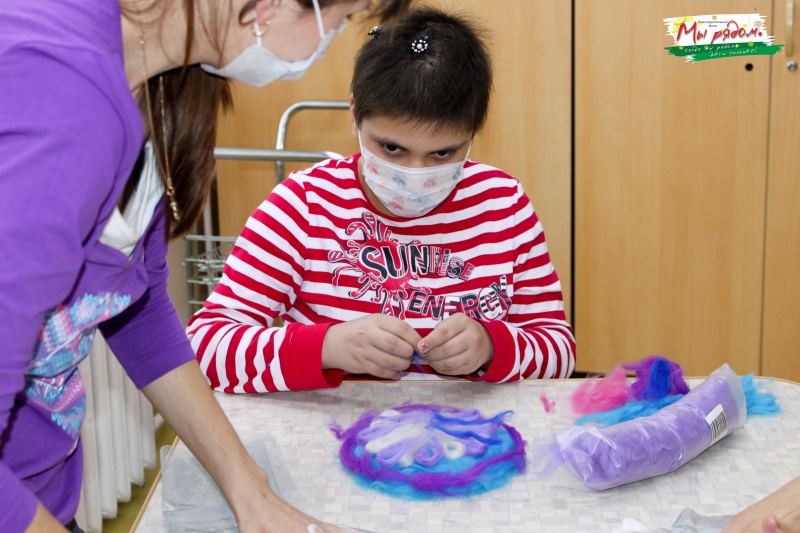 В этот вторник мы с детьми и мамами онкоотделения занимались мокрым валянием и поднимали настроение тортиком.
